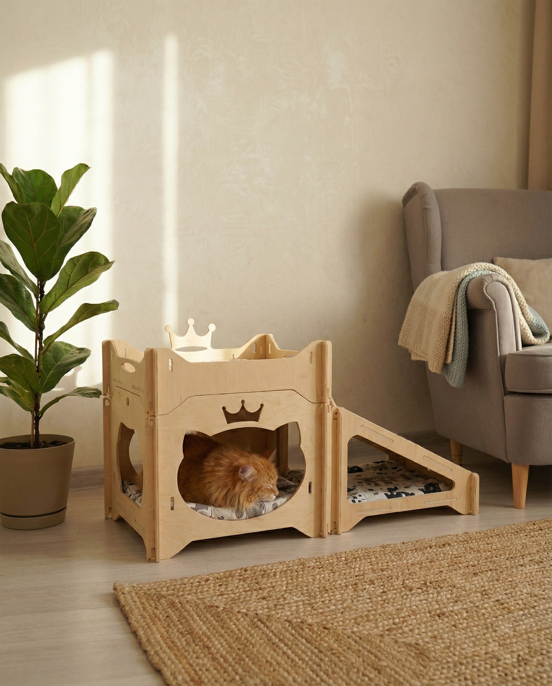 - Уютный домик-кубик с декоративным входом в форме кошки