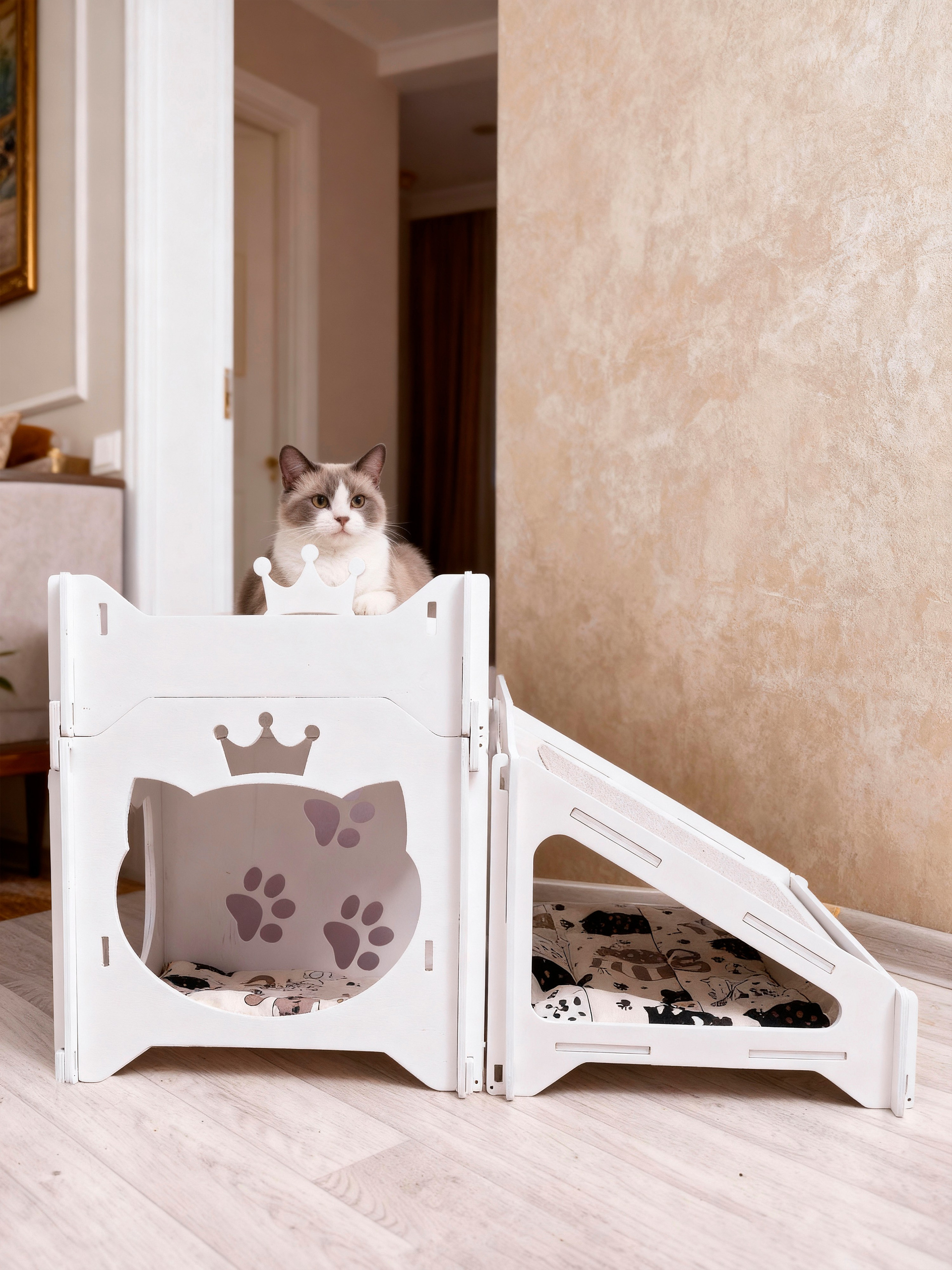 Такой домик станет не только любимым уголком для вашей кошки, но и стильным элементом интерьера!