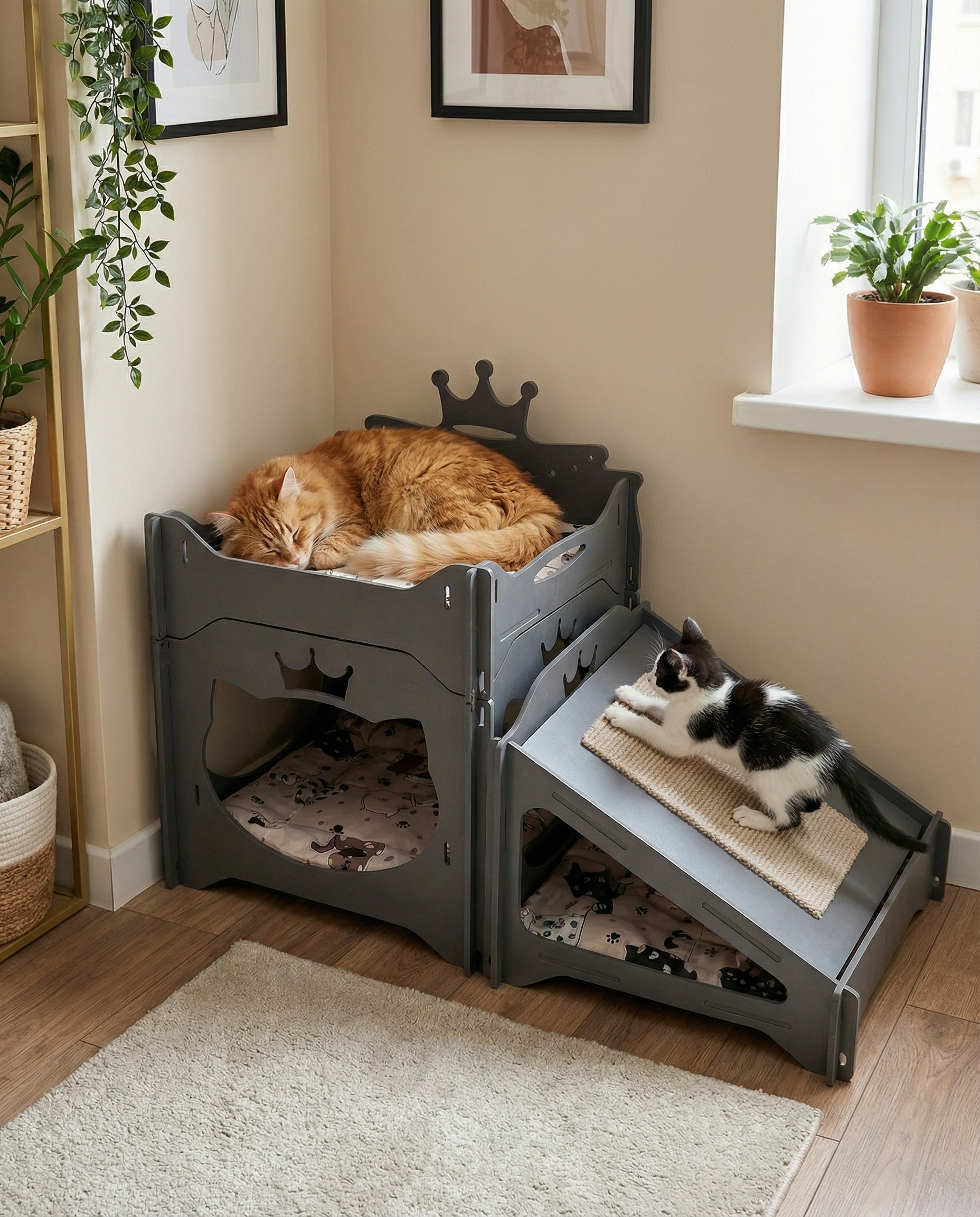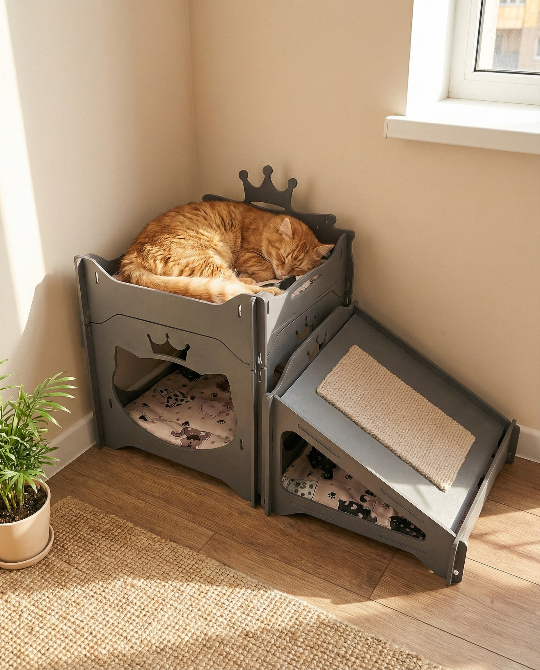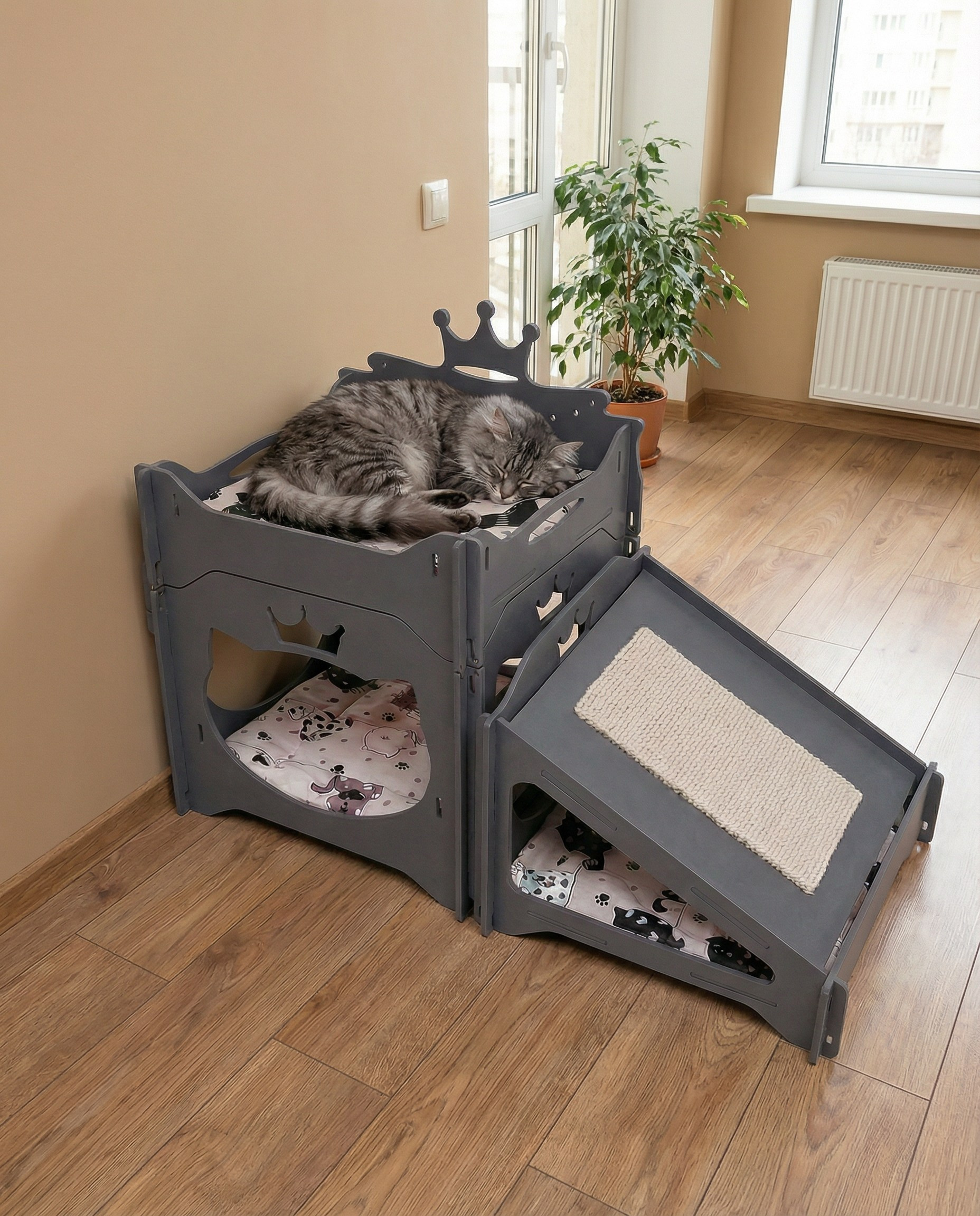 Модульный домик для кошек «Комплекс 02 Серый»