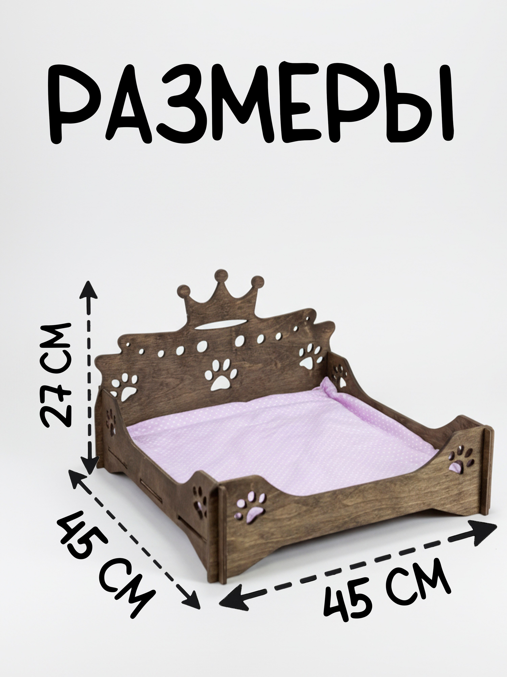 Элегантная лежанка из 8 мм шлифованной фанеры с пропиткой благородного темного оттенка палисандр. Изысканный дизайн с декоративными элементами и мягкий съёмный матрасик на синтепоне создадут комфортное место отдыха для вашего питомца. Благородный темный цвет добавит интерьеру изысканности.