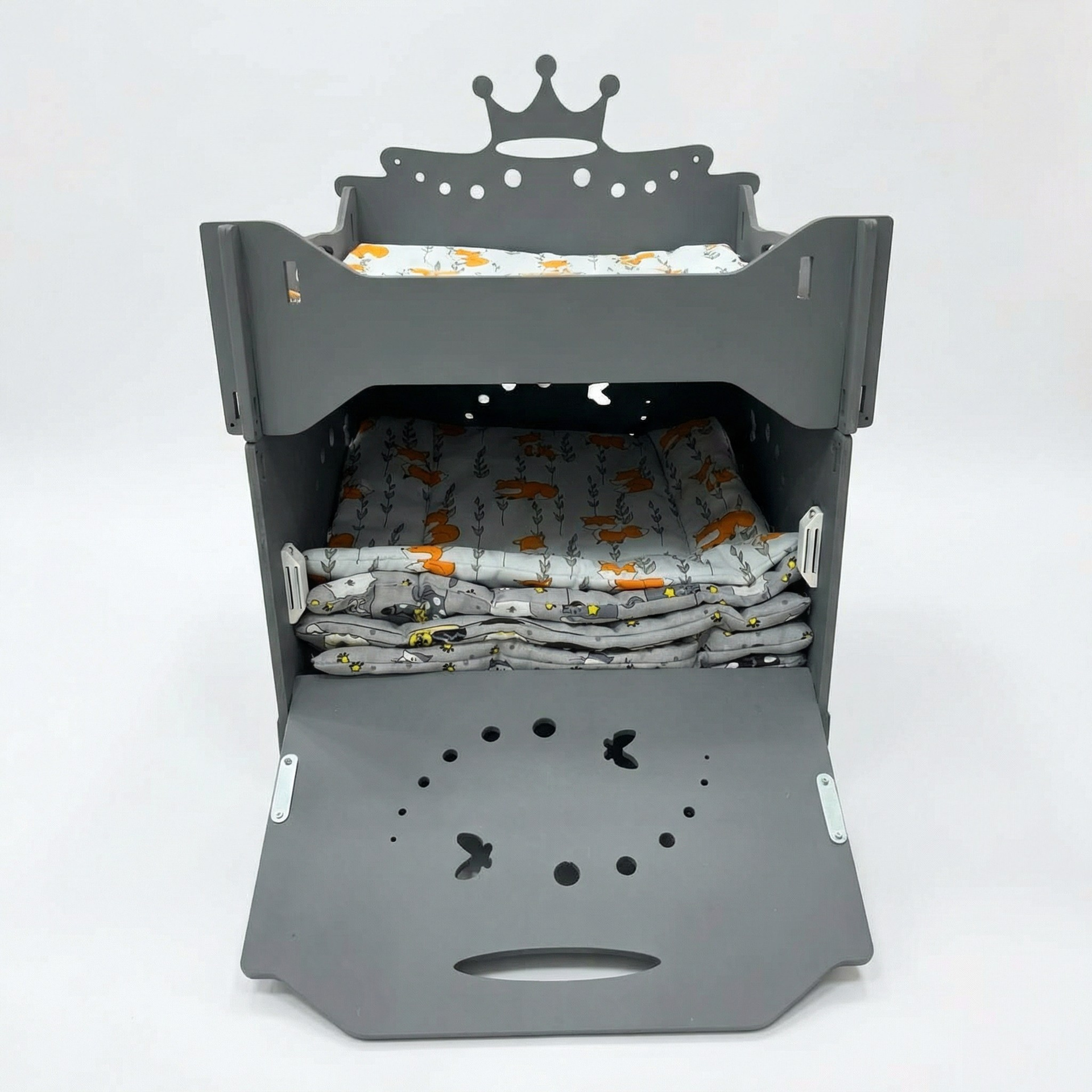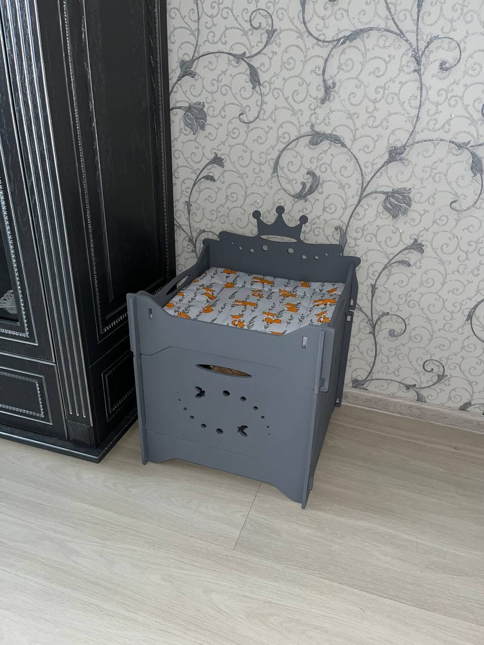 Элегантный дизайн с короной в серых тонах впишется в любой интерьер.