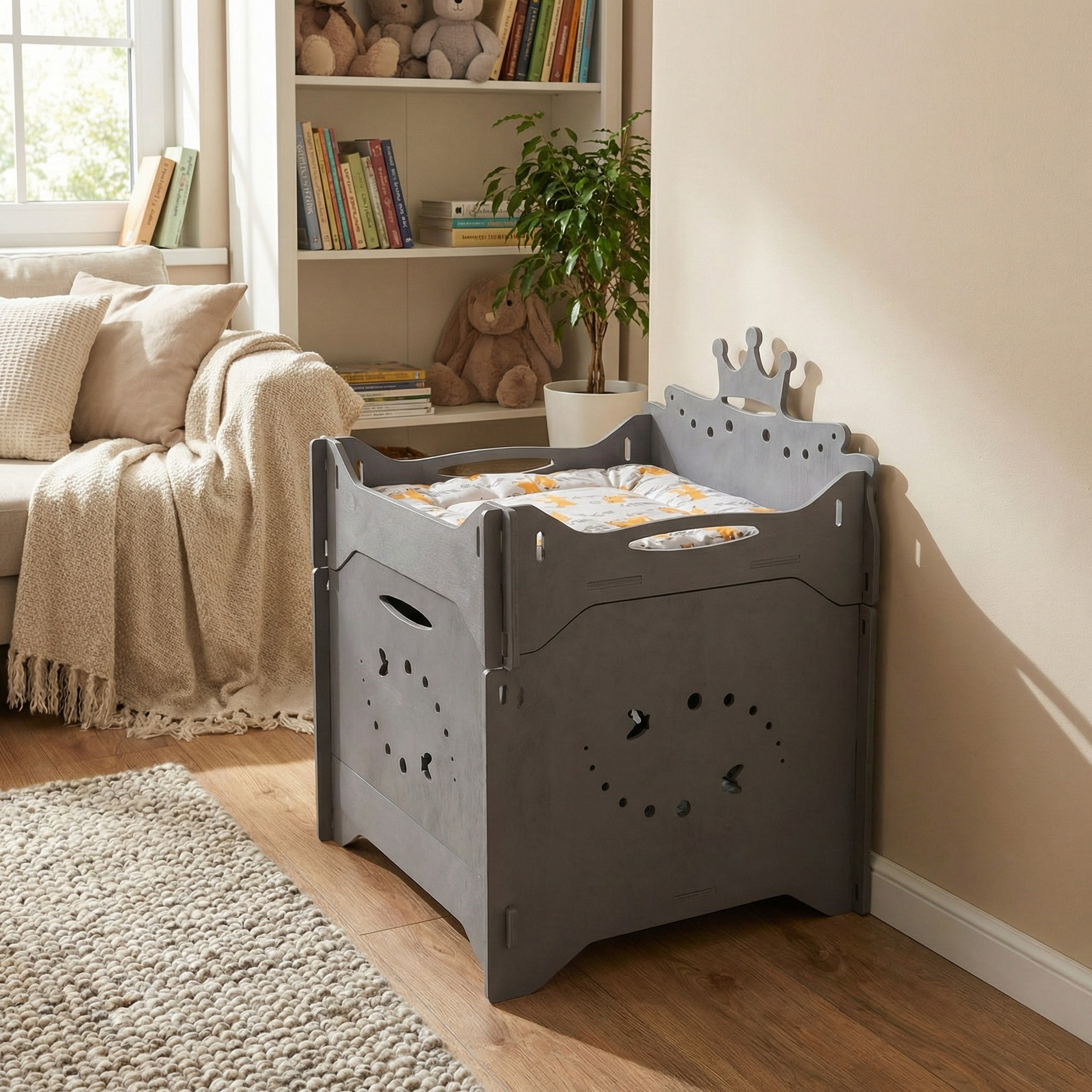 Уютная лежанка сверху и вместительный отсек для хранения снизу.