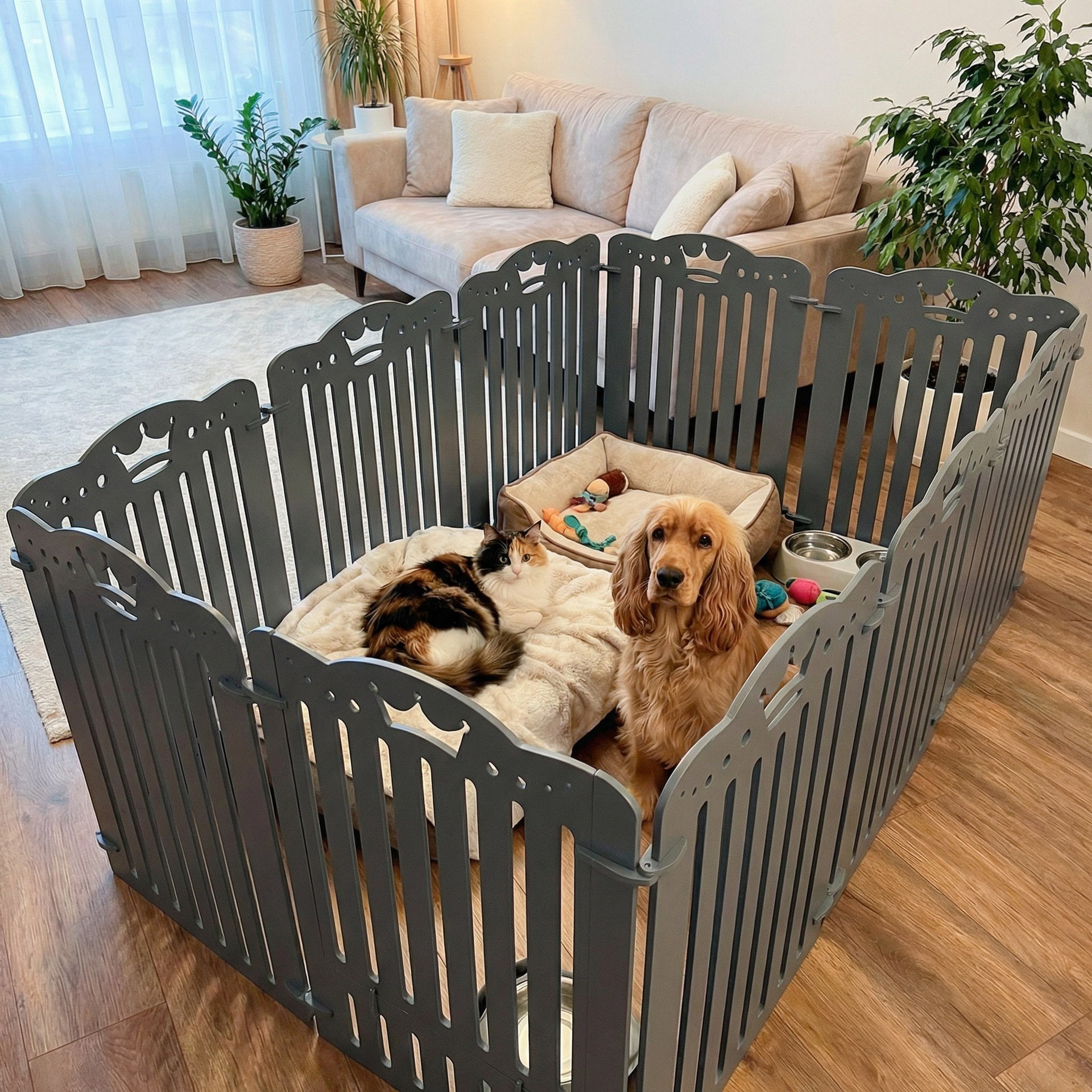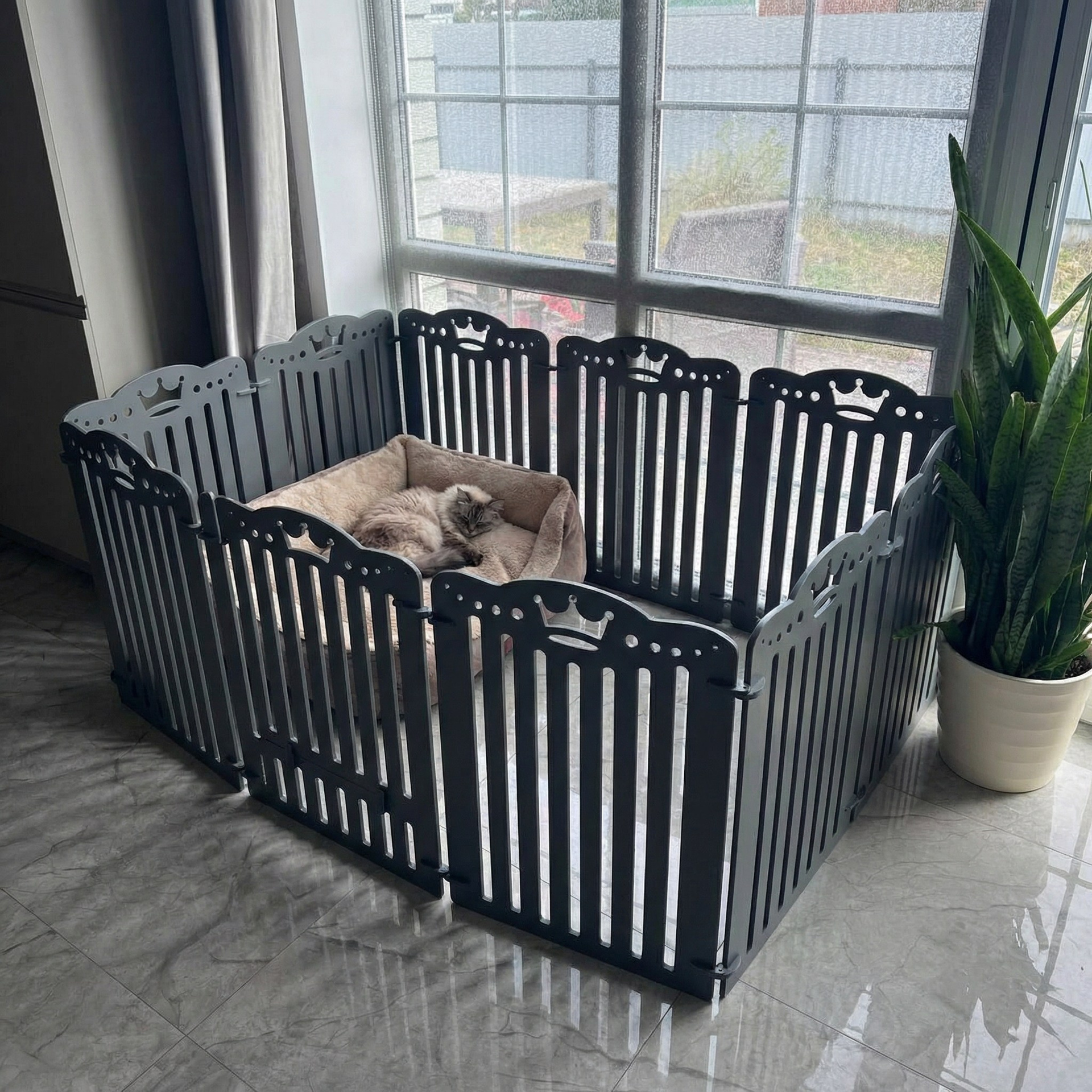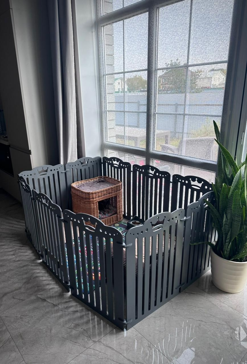 Вольер поможет создать отдельное, безопасное пространство для ваших любимцев — будь то для ухода за малышами, времен изоляции или адаптации новых питомцев в доме. Легко собирается, позволяет варьировать количество секций и подходит для любого интерьера.